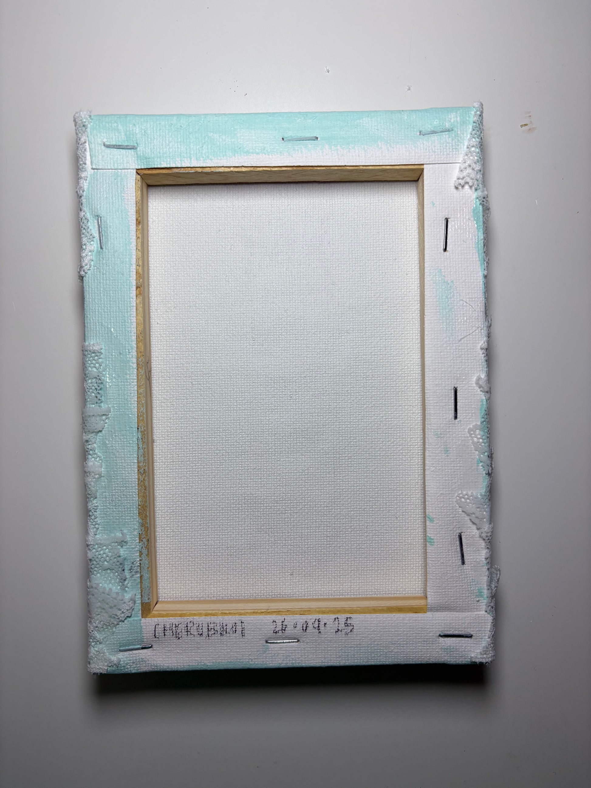 a mixed media piece on canvas measuring approximately 18cm x 13cm & 1.5cm depth.